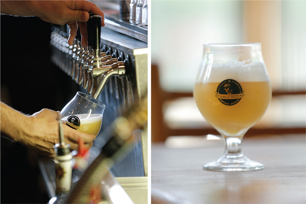 for people who are friendly, with good social skills and heart, and they have to genuinely like working with people. Our team is one big (at times, somewhat dysfunctional) family. We don’t take life too seriously, and we get that if the staff isn’t having fun, there’s a trickle-down effect and the overall customer experience will be less fun.” The varieties of fun on tap at Bacchus have expanded over the years. “Great food and incredible house-brewed beers, which are part of the best beer selection in the Hudson Valley; a full bar and a nice wine selection;