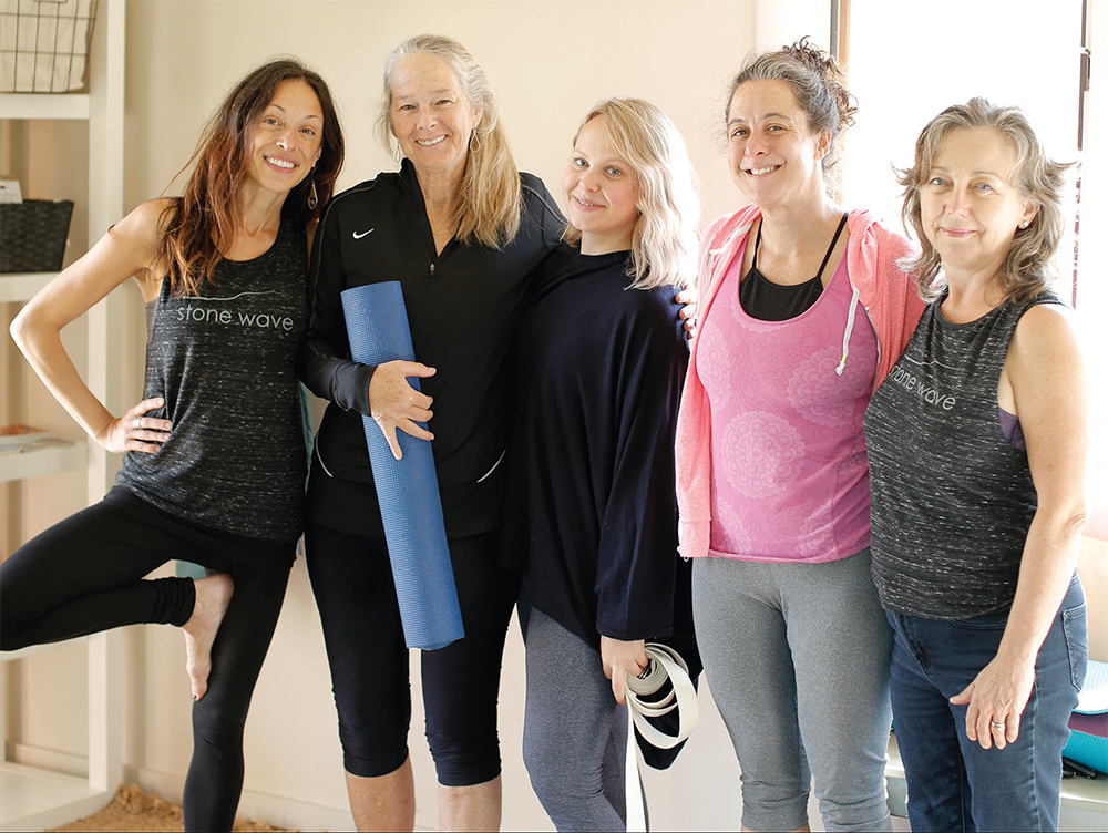 at Stone Wave, Liz aims to shed any negative stereotypes or barriers associated with yoga. It’s not for everyone, she admits, but yoga is an option for anyone who’s willing to try it. “I don’t like all the visuals of yoga on social media,” Liz says. “I think it sets a really prohibitive visual of what