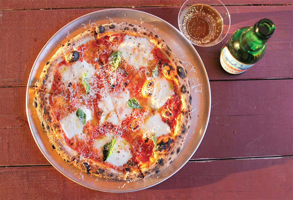 Those who visit the restaurant in Bushwick, Brooklyn are encouraged to venture upstate for a look at where the apples are born and then enjoy a pizza on the panoramic pavilion. “We use really fresh mozzarella, San Marzano tomatoes, cold-pressed extra-virgin olive oil that smells of green tomatoes and fresh-cut grass,” he says, “and hand-picked basil from the garden. The crust is made with a Caputo 00 flour—the grain is half the size and it absorbs more water, so it’s fluffier and lighter and easier to digest. I could never be happy with B-rated pizza. It has to touch me, the way I hope my ciders touch people.”