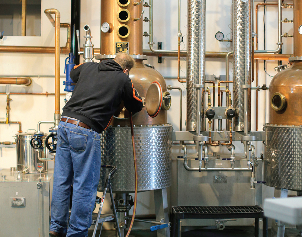 “We are one of eight distilleries in America to do its own malting, and the only US distillery with a kilning floor,” explains Steve Osborn, co-owner of Stoutridge Winery & Distillery in Marlboro. Steve and his wife Kimberly Wagner expanded their premium Hudson Valley wine selections last spring to include spirits, an endeavor that they approach with the same amount of passion, precision, and patience as they do with their wines. The purpose of the craft distillery is to create and capture flavor, minding traditions of whiskey, brandy, gin, amaro, and vermouth to foster innovative modern versions. “We also make a 36-times distilled vodka, which is not so traditional,” Steve says.