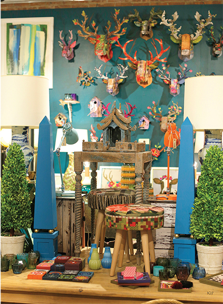 “We create dreams in our store. The way we merchandise the store. The way we display the store. It’s such a blend. We create a dream, and we want people to be taken away by it. We want everyone to walk into our store and be able to find something either for themselves or as a gift. There’s something for everyone,” says John. “John and I are veteran shoppers. We are constantly shopping for the store and for our interior design clients. We’re very much aware of the fact that there are very few things you’re surprised by—you see the same things over and over again.