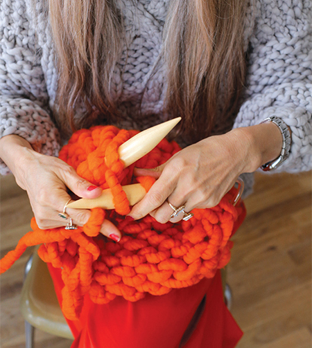 of,” explains Anna. Their signature Big Loop yarn is handcrafted in small batches by artisans—never mass-produced. It is made from 100% American merino wool. Their other yarns are made in a family-owned mill in Italy.