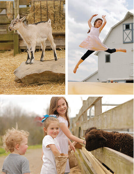 Hands-on activities to explore include fishing, picking your own goodies, taking a hayride, and milking a cow. Starting in August, there’s a corn maze; the jumping pillow, unique wooden playground, and mini-golf are open year-round. You can get up close and personal with alpacas, sheep, goats, cows, and donkeys, or watch the honeybees do their thing.