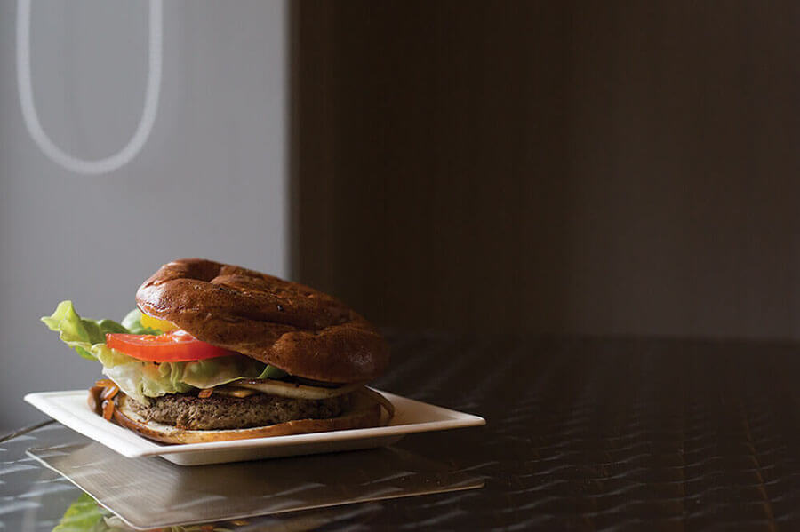 But the partners didn’t want the first floor to sit empty, and knew that a cafe was the right use. “Staying true to our devotion to animals, there was no question it had to remain plant-based. So we started talking to local chefs and seeing if anyone was interested in the space. We got nowhere. So we started talking about the menu.... We attended a food show, and one day over lunch we realized that comfort food and ‘all-American food’ had mass appeal. We talked about how to appeal to a broad audience, and the ‘burger bar’ concept was born. We took the concept from idea to opening in 12 weeks with lots of hard work, ‘analysis paralysis,’ and fine tuning.”