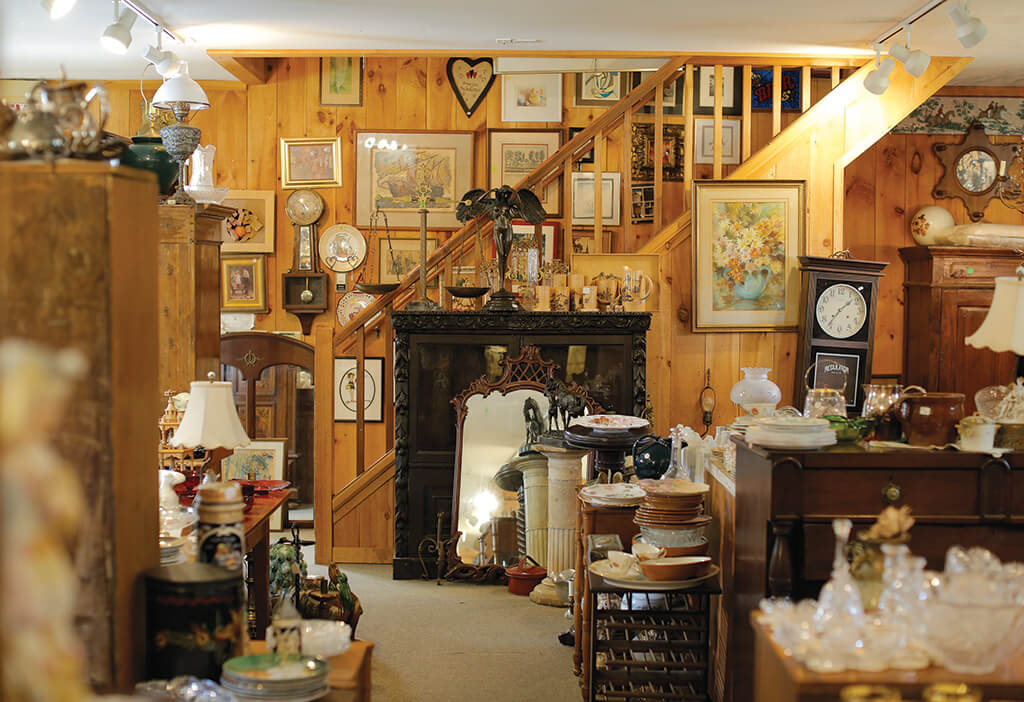 There’s a lot more to a pleasurable antiquing experience than simply buying something old. “We treat the customers like family,” says Mary, “whether it’s a collector we’ve been working with for years or a random newcomer. People like coming here because we have so much fun; we have people from other states—both dealers and vacationers—who stop in every year when they’re in the area. There’s a special camaraderie to the fascination with quality old things. A lot of the regulars get a hug when they show up and again when they leave. We like people. They share things with us, and it makes a richer experience.”