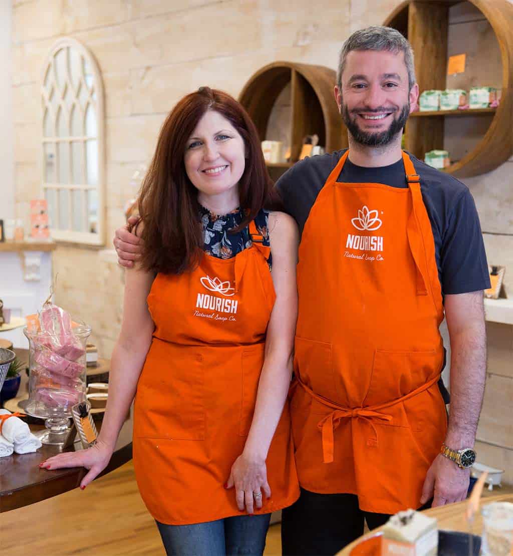 Talk about a productive response to stress. Nourish Natural Soaps was formally founded in 2017. In 2020, walking down Beacon’s Main Street, the couple spotted a charming vacant storefront that turned out to be right on budget for them, and the bricks-and-mortar vision became a reality in January of 2021. “We were both working from home at the time so we decided to move forward,” Feighan says. “We knew nothing about retail, but muddled our way through the process, tapping into amazing local resources and friends that magically appeared and were excited to help us.”