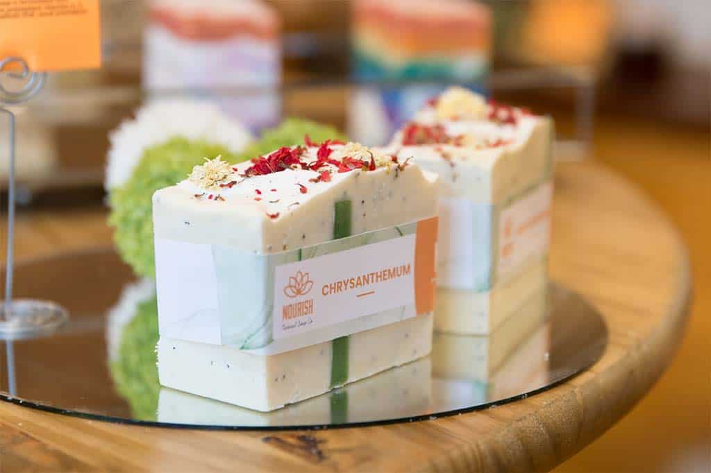 “Once someone tries our soaps, they’re in love and a customer for life,” says Feighan. “We are constantly talking to customers and gathering input. When we first opened the store, the first things people asked for were shampoo bars. We delivered, then started introducing products like face masks, whipped body butter, and scrubs, keeping true to our brand promise of nourishment and self-care.”