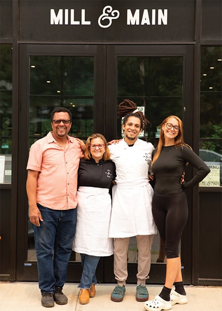 This fall, the back patio will stay open with space heaters and a firepit as guests dine on the harvest bounty (expect some spectacular apple- themed flavors) and as the weather grows colder, hearty Sunday suppers and indoor demos with culinary experts are in the forecast. And great drinks, of course, from fine local wines and beers to a cocktail program informed by the Mill & Main team’s unique heritage and sensibilities: an Aguardiente sour, a basil berry bramble, a shaken colada, a Caribbean sorrel spritzer mocktail. Mill & Main has been tapped to host a few milestone events, and the team looks forward to doing more: If you haven’t nailed down a spot for your holiday party yet, talk to these folks for an unforgettable evening. “We had a vision, we had an idea, and we had a plan to some degree,” says Sidoti, “but it really has come together almost better than we envisioned it could. We feel very fortunate and very, very lucky.”