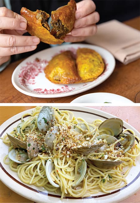 “I’m half Italian and half Colombian, and Paul is from Antigua, and Christopher got the whole mix: the foods that we grew up with, that were important to each of us and passed along by parents and grandparents,” Claudia says. “So our menu is a really nice mix of dishes from our Colombian, Italian, and West Indian backgrounds.”