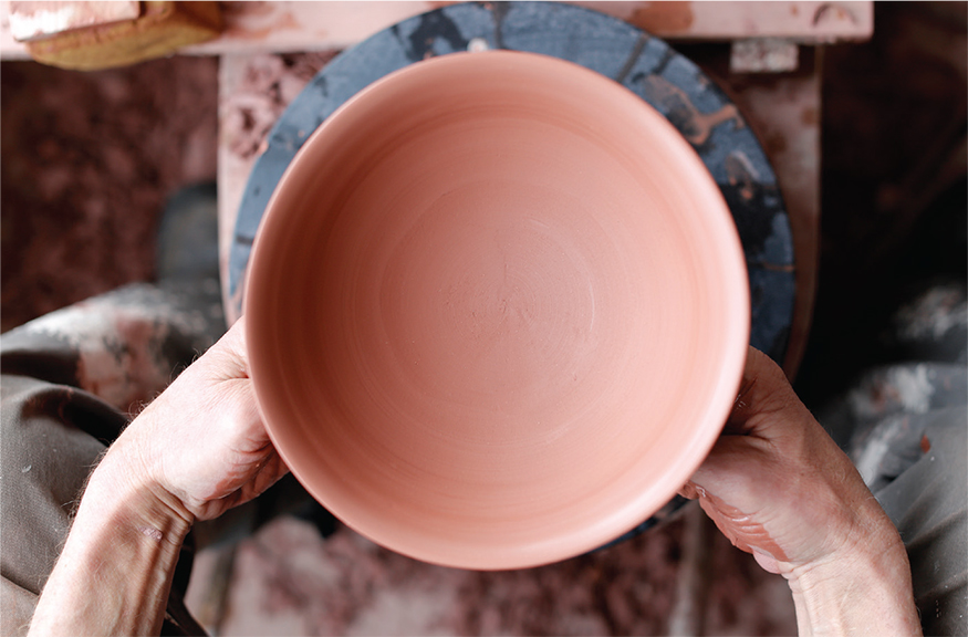 “Each piece may be handled more than 20 times in the process of creating it. You work the clay, it’s on the wheel, it’s designed, measured and formed, then into the kiln, then glazed, back in the kiln and so on.”