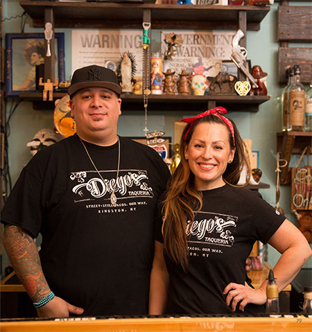 They’ve been voted Kingston’s most romantic dinner spot, which perplexes them a little. “We’re not [French bistro] Le Canard Enchaine,” says Isaac, “but we have had five first dates that happened here and led to marriage, so something’s working well. We’re waiting for the first baby to be named Diego.” In an ironic twist, they were invited to open a branch in the SUNY New Paltz student union building, on the campus where Isaac worked when he first arrived, and students can now grab a Diego’s taco on the way to class.