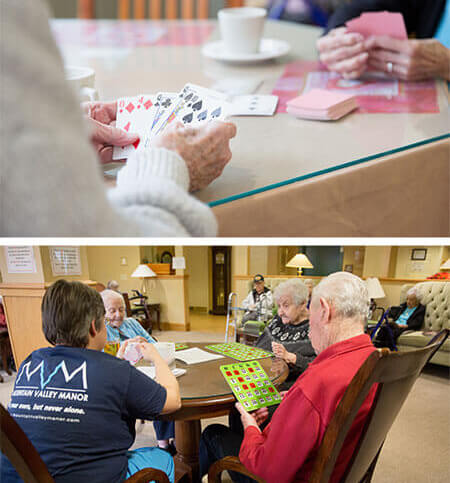 Mountain Valley Manor is an adult home licensed by the Department of Health (a specific standard that not every care facility meets) to provide care, room, board, housekeeping, activities, and more to people over 55 who are able to walk and do their own basic grooming; a secure memory care unit serves Alzheimer’s and dementia patients.