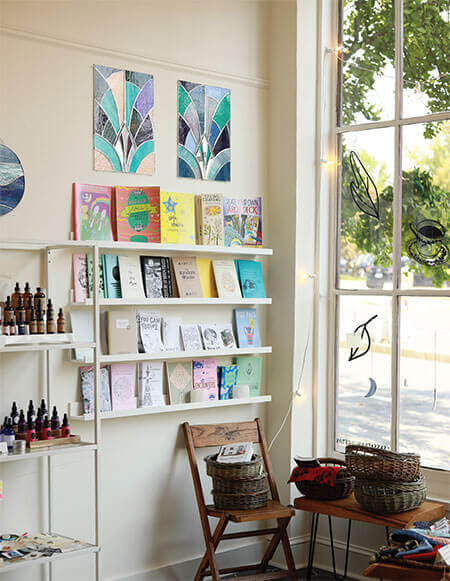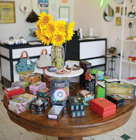 Events are frequent and exuberant, enhanced by the crowd, the ethos, and the setting. “We have events that are fun, because our relationship with vendors is to amplify and celebrate the rad work that they’re already doing,” says Lydia. “We host monthly art openings, workshops, and events, and different modalities in the counseling arts—tarot, palm readings, aura and past life, reiki. We even have a therapy dog booked for later this year. And after our opening, we built a bar. People wanted more parties, so we started doing First Saturdays.”