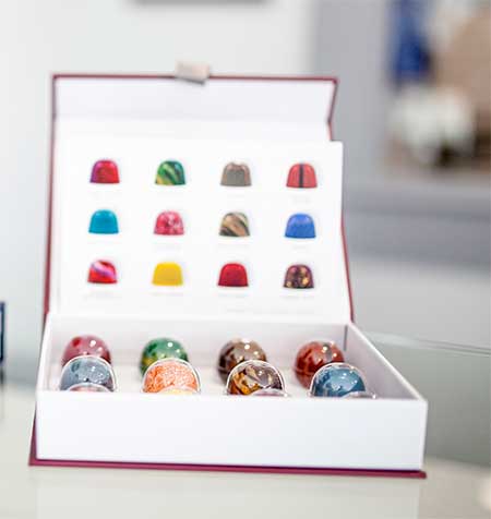 “Each chocolate looks like a little piece of art. The flavors are delicious, smooth, and surprising. I still think about the texture and flavor of the lemon one.”