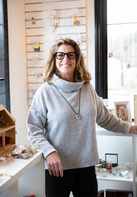 Nagle grew up mostly in Ulster County, but spent time in Astoria, Queens and Bakersfield, California, where her father worked rodeos as a bull rider. “I spent rodeo days playing make-believe under the grandstands, and I loved building shoebox troll houses at recess,” she says. “And I’ve always loved the fine details: of architecture, of interior design, art, and history. I love miniatures. Those passions, combined, are at the core of Miniature Works.” Her early dream of growing up to be a circus clown failed to come to fruition, but she found that teaching social studies—as well as being half the team responsible for the legendary Spy Social Eatery and Bar in High Falls—made for a satisfying life. But her love of making little things never faded, and in July of 2022, she opened her gallery and shop.