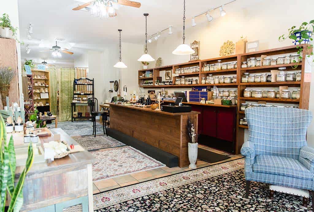 Our son is a software engineer and helps out with the tech stuff, and our youngest daughter is an art student and does some handpainted cards for the store.” It’s a labor of love for all concerned. “We love the creative aspects of it—building something new, to our own standards, that can help people, and being part of a community of merchants working together to make the downtown vibrant,” says Argoff. “I enjoy finding creative ways to incorporate the benefits of herbs into everyday products and handcrafting them, but my favorite part of the work is the day-to-day interacting with customers, offering options based on a long history of herbal tradition, and having the customer come back and tell me they feel a bit better!”