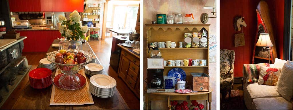 Thus was WhistleWood conjured into existence. The Bundt cake and muffins have become a tradition of all-day baked goods, desserts, and fresh fruits mentioned in review after review. And Myer’s down-to-earth warmth has made the place a beloved home away from home for visitors from all over. The Main Lodge offers two queen and two king rooms, and the Carriage House is a vacation rental now that sleeps four guests comfortably and features a full kitchen with all you need to cook your own breakfast. Antiques in cherry and bird’s-eye maple are blended with Myer’s favorites and finds for a cozy, eclectic elegance. ”