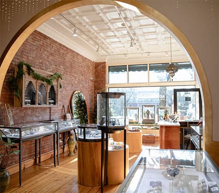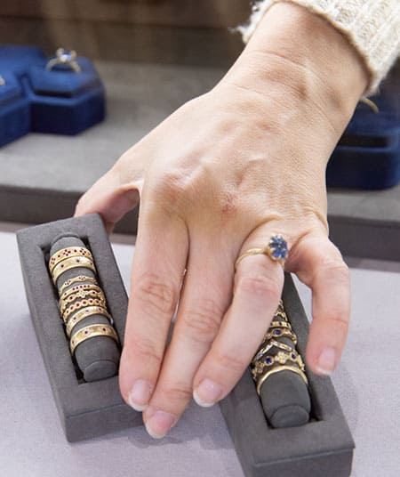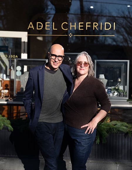 Chefridi finds his bliss in discovering unique stones and prototypes of new designs; Jacobson finds hers in creating and maintaining an environment that’s inviting and respectful, where people “feel at ease as they discover and connect with jewelry and lifestyle items, whether they are treating themselves, finding a special gift, or preparing to make a lifelong commitment,” she says.