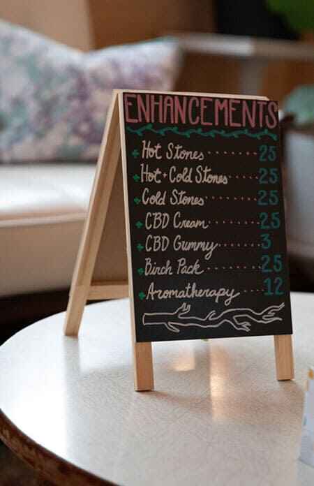 Menu choices at Birch Body Care include targeted and all-over therapeutic sessions and options for pregnant folks, with add-ons like soothing stones (hot or cold), aromatherapy, and CBD products. Facial treatments are customized by expert estheticians to focus on a client’s concerns and skin health, and can be enhanced with lip treatment, LED light therapy, “power peels,” and a hair and scalp oil massage followed up with hot towels, among other options.