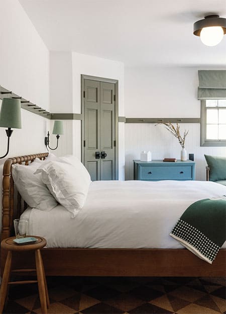 The 230-acre property, the seventh Sullivan County spot reimagined by FSH, was purchased in fall 2020, “a time when we really weren’t sure whether we’d be able to continue to exist or not, so we figured if we were going to go down, let’s do it with a big swing,” says Kirsten’s husband, Sims Foster. “A real estate friend told me he was about to get the listing, and we realized that the size and the history — it was a wellness spot for decades — made it worth taking a hard look at. So we jumped in the truck and, well, we got excited right away to do what we’ve been doing — take an older place and give it a new chapter.”