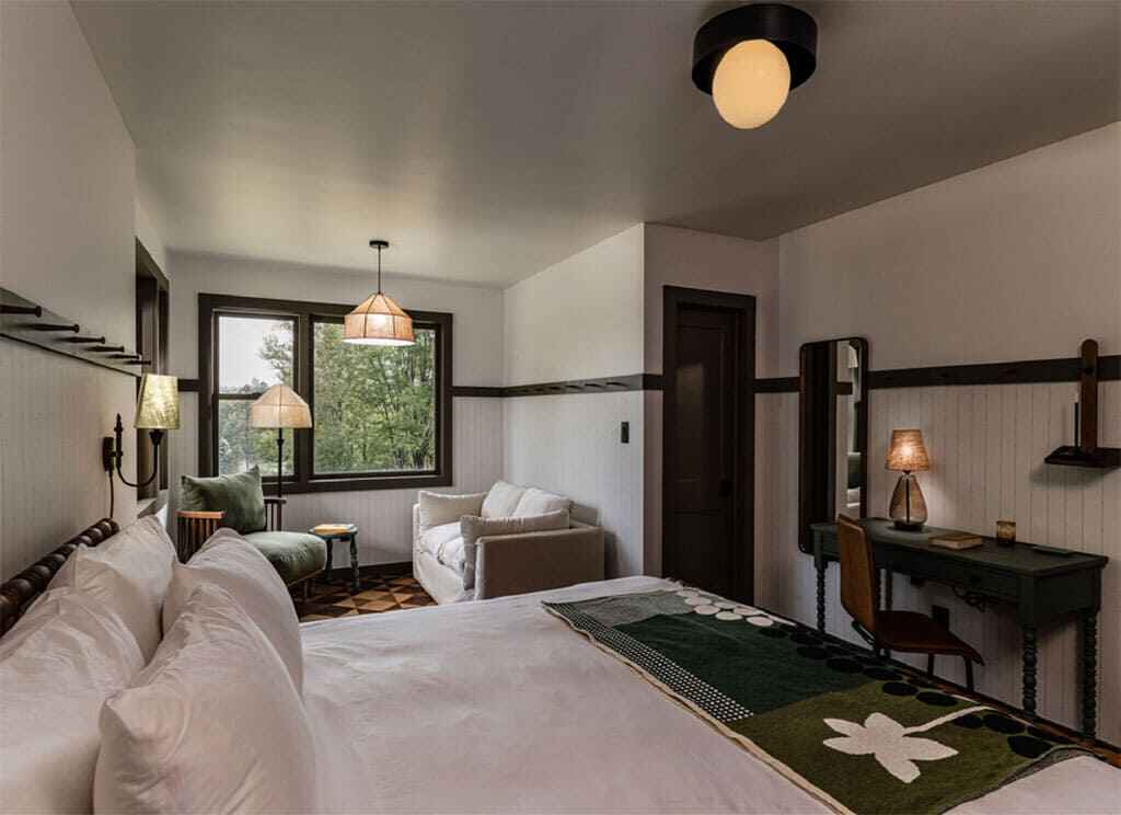 The 34 guest rooms at Hemlock Neversink are simple and luxurious: fine linens, fluffy Turkish robes, exclusive, custom-designed furnishings with Quaker-inspired lines, earth tones. Options include everything from the Solo Traveler to the Hemlock Grand Suite; many have private patios. The property’s restaurant, the Bittersweet, has an ever-changing menu based on the best of what their hyper-local suppliers deliver fresh that day; it’s vegetable-focused, and reviewers speak of discovering and loving dishes they had never imagined. (Omnivores will find local fresh meat and dairy on the menu too.)