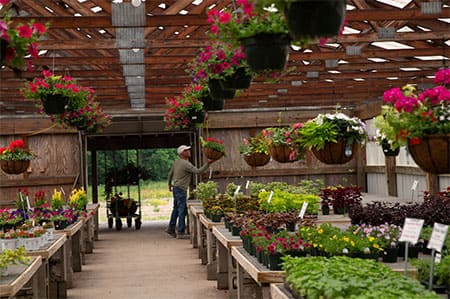 We call ourselves a four-season farm, and I think we live up to that — we take a break midwinter, but we stay open right up until Christmas selling holiday things: trees, hand-decorated wreaths, gifts, poinsettias. Leading up to that, in the fall, we’re focused on pick-your-own pumpkins, apple cider donuts, and pies.”