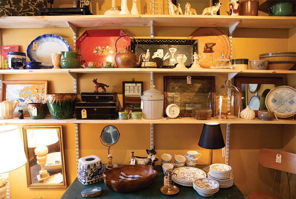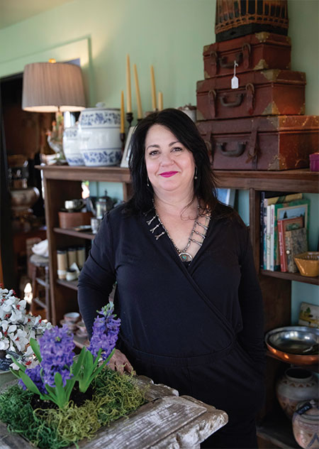 Most days, Philippis comes in early and stays late. When she’s not finding, researching, cleaning, fixing, and displaying cool old stuff, she’s planning events or moving furniture around, setting up fresh vignettes, and chatting. A natural hostess, she thrives on the hospitality side of shopkeeping. “We’ve been doing a Friday ‘happy hour’ for a while now,” she says. “We stay open until seven, put out some pizza or snacks and some wine, dim the lights a bit, and just have a lot of laughs.