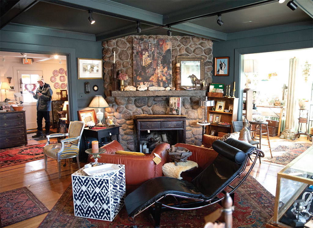 Looking for a place to unwind, where you can browse through all sorts of beautiful funky stuff, relax with a great cup of coffee and a snack, and be welcomed like kinfolk? Come to Port Ewen, right across the Route 9W bridge from Kingston, and stop in at Ball & Claw: Antiques, Design, Coffee. “Every sort of person comes to the shop,” owner Maria Philippis says. “It’s very inclusive. You can get a coffee, a charming card, a piece of estate jewelry, a chair, a painting….Browsing is free, and it’s a nice spot to spend some time.”