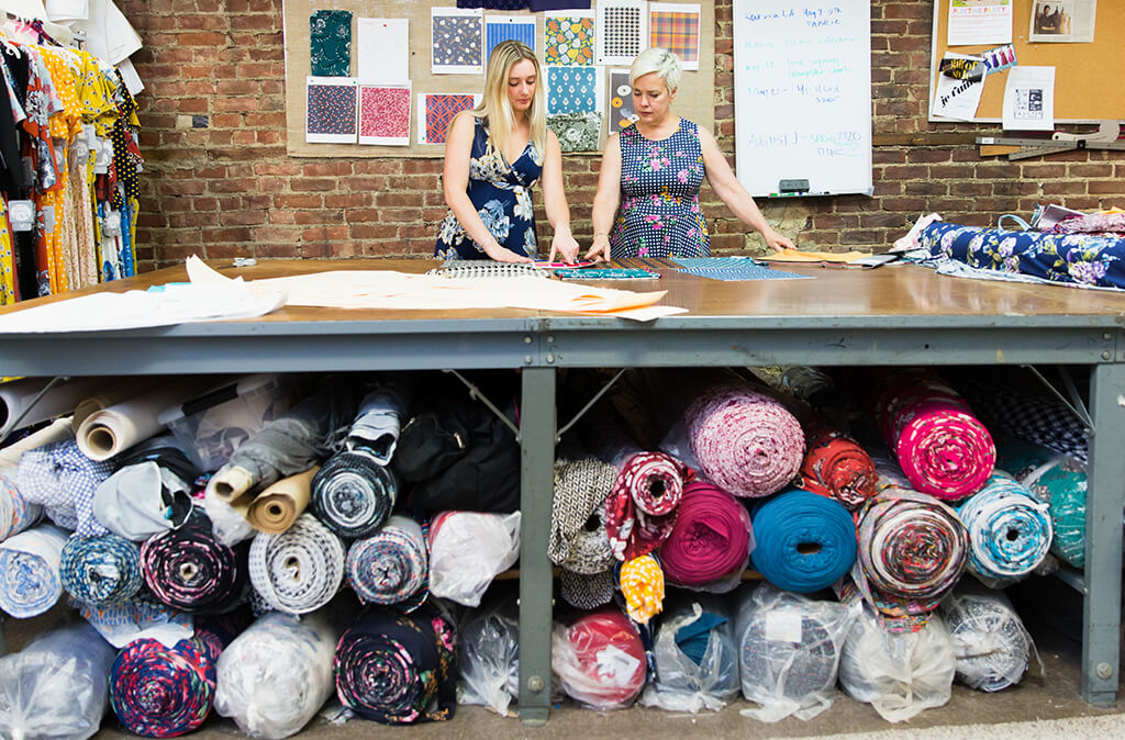 “We’ve got 2,200 square feet and half of it is our flagship store, the other half is for our online fulfillment,” she says. “We do everything here, from textile design to photo shoots; we use real customers as models. We get interns from the SUNY Ulster fashion design program; so far, four of them have moved into paid positions. Between here and the Brooklyn production facility, we make 300 to 400 dresses a week.”