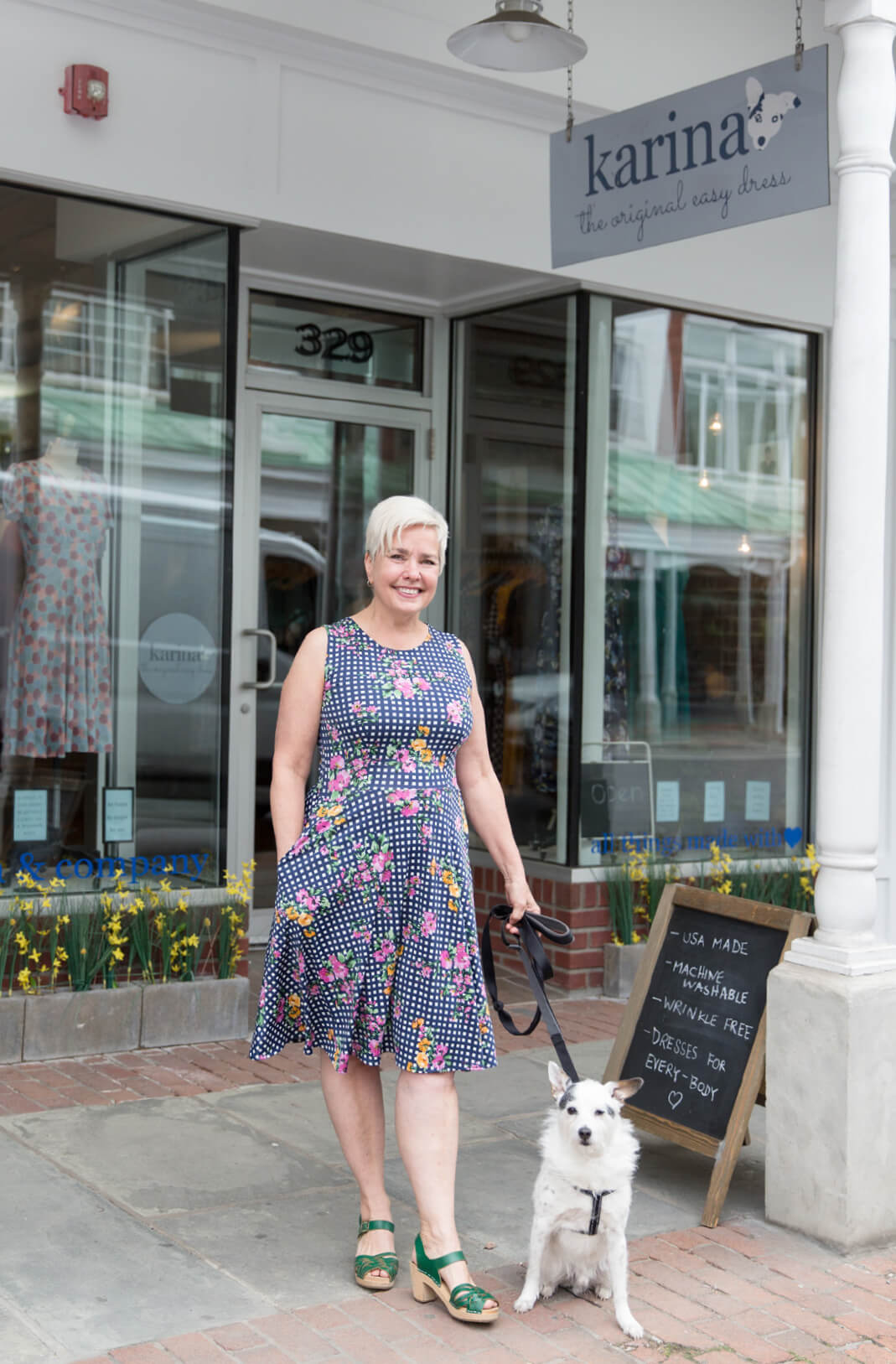 Growing up in a small town in Massachusetts, Karina Cousineau didn’t always appreciate being “the girl whose mother makes her clothes,” but she did enjoy learning the skills involved. Little did she know that one day she would be loved far and wide as the creator of “the original easy dress®.”