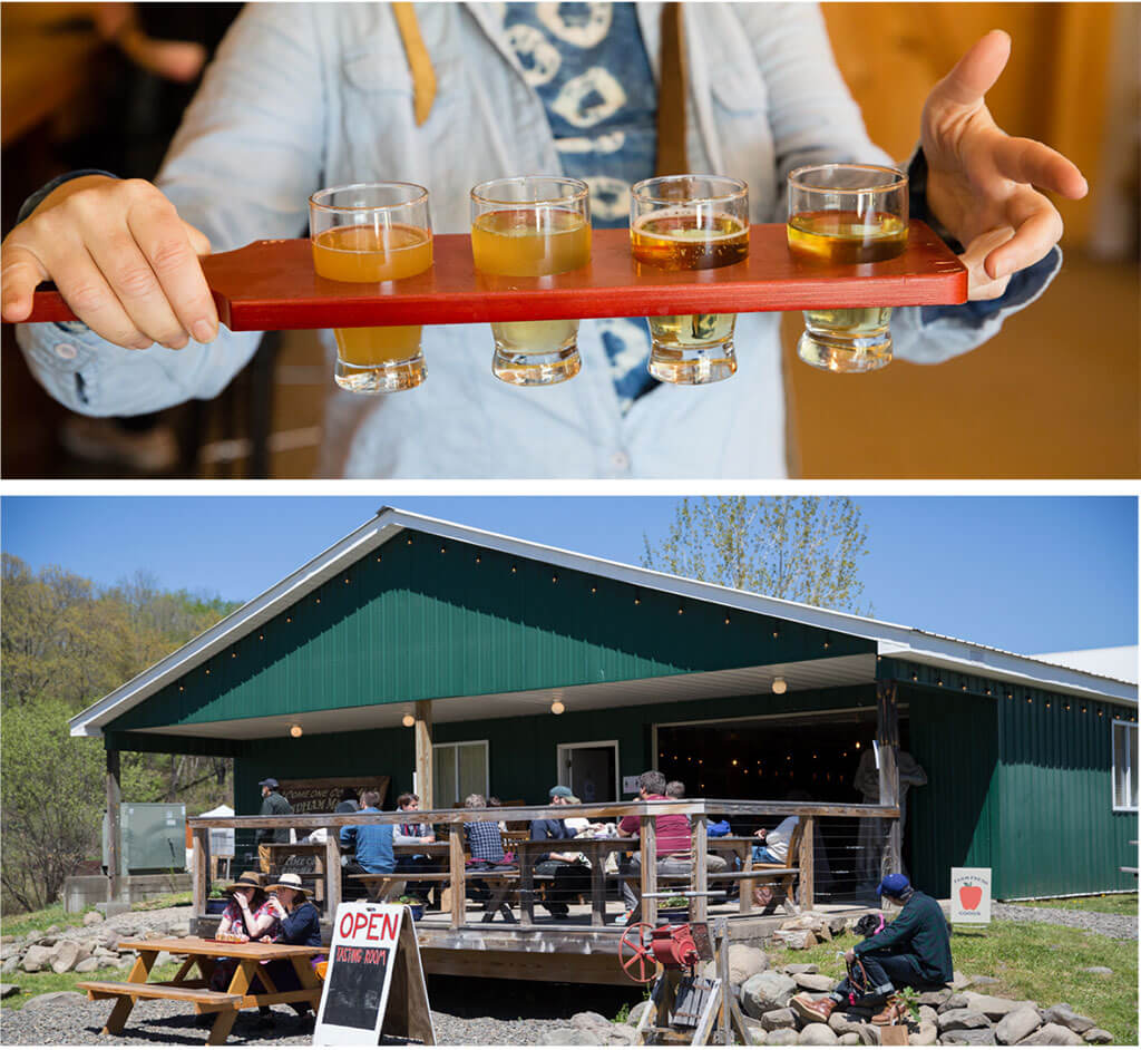If you were looking for a two-word description of a perfect Rondout Valley Saturday destination, the words “farm bar” might well catch your eye. Add “serves pizza,” “cider on tap,” and “dogs welcome,” and you begin to understand what makes Stone Ridge Orchard a hit with visitors and locals alike.