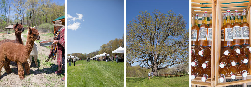 Special events held under a spreading centuries-old oak include tastings and specialty markets, along with weddings and milestone celebrations. Themed makers markets this past spring included “FINDINGS: Rare Plants and Garden Antiquities” and a Mother’s Day weekend Women in Food & Farming Festival. This summer, the farm will host The Comedy Orchard, followed in June and September by Cider, Blues & BBQ, Amythyst Kiah in July, and Applepalooza—leading up to the start of u-pick season and Pooches & Pumpkins— in October.