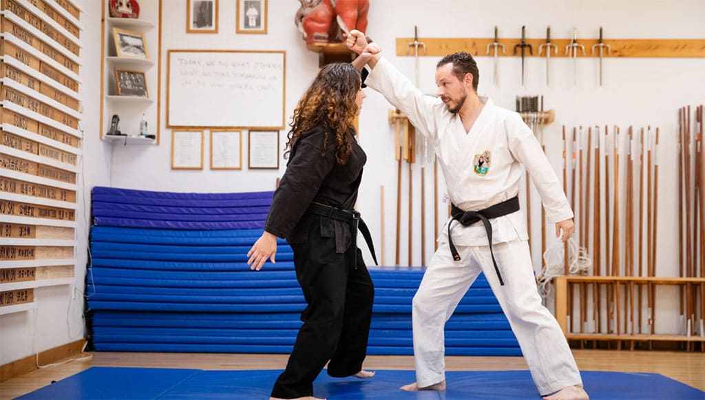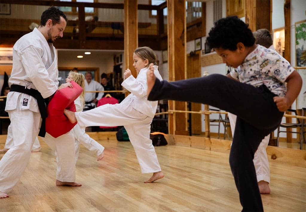 “I love the diversity of it,” he says. “And I love the diversity of issues that bring people in. One parent might bring in a kid to build confidence, because they’re shy; another might bring in a kid who has a hard time controlling himself and being peaceful. What happens in the class is that both of those kids will get pulled toward the center, toward taking charge of their own behavior through practice, so kids with seemingly opposite needs both get what they need from the same class. Adults, too; they’ll come in for one reason and gradually discover a lot of other benefits. The dojo is a place to face your fears in a supportive environment, and everyone can benefit from that.”
