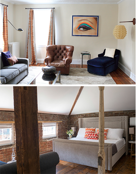 The rooms feature casual-chic decor like velvet couches and exposed brick walls, coupling “unique charm with modern conveniences.”