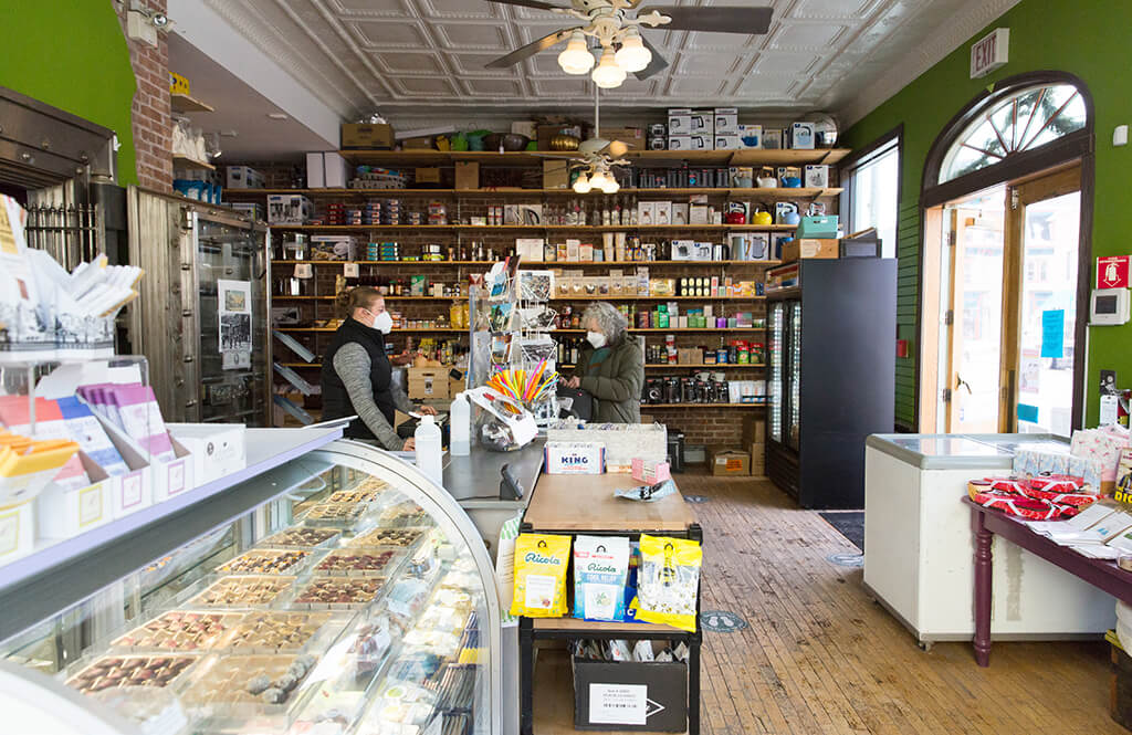 With the Cheese Barrel having closed, Jess and Jake stepped in to fill the void and to become an essential business. They greatly expanded their shop’s food offerings, while still maintaining their kitchen and home goods inventory.