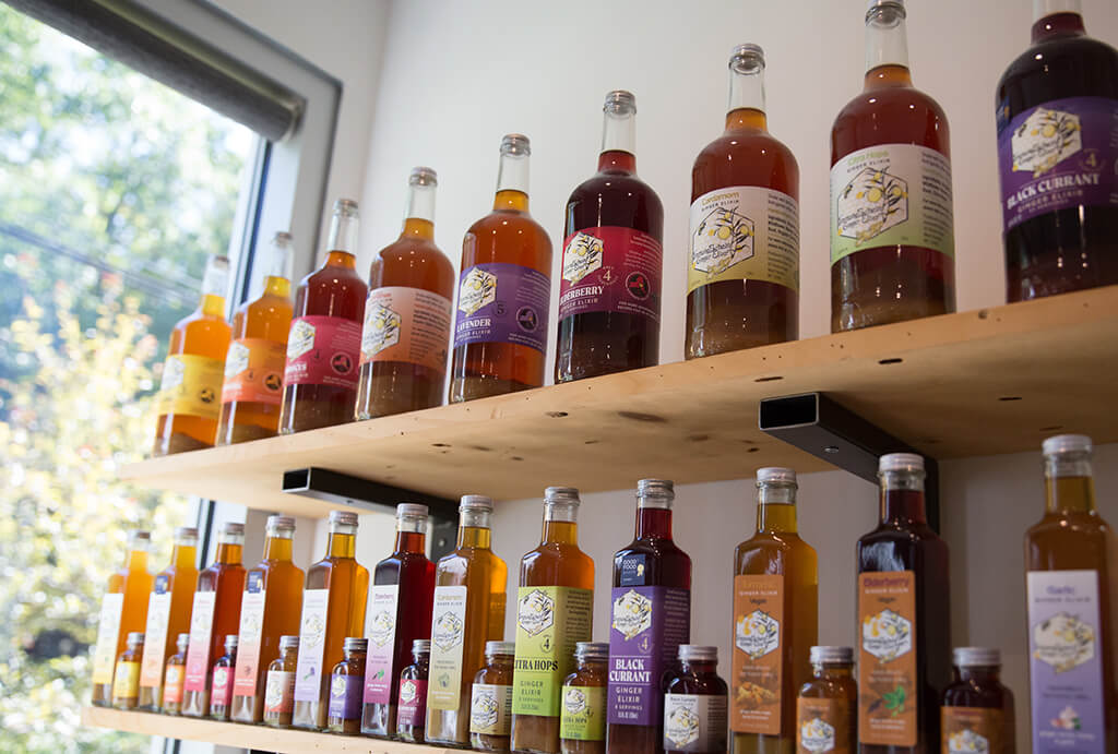 After finding themselves at home in the Hudson Valley, the couple decided to give that idea a shot and realized Corinna had found her bliss. “In the beginning, my goal was to have fun creating and sharing these elixirs, selling them at local markets, and bringing in enough money to cover my costs and a little profit as my income,” she says. It turned out that ginger, honey, and lemon are a combination most every culture agrees on. “It triggers so many memories in many people of mom or grandma making something similar,” says Corinna. “When it comes to different cultures, there is a connection in each one’s history, and it is fun to hear the joy in people’s responses when they sample the elixir for the first time.”
