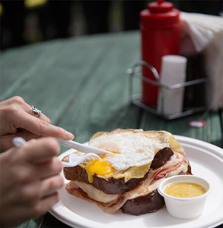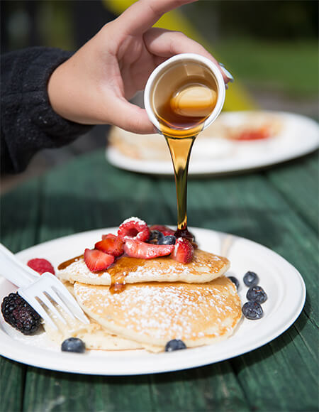 Arriving upstate, he started casually helping a friend make some sandwiches and ended up in an ownership role despite himself. “Julia Child said, ‘You don't have to cook fancy or complicated masterpieces, just good food from fresh ingredients’ at a fair and reasonable price in a timely manner,” he says. Charm never hurts, especially when you’re pleasing a crowd that includes “locals, second home owners in summer and ski season, wedding attendees, tourists, definitely families with young kids. We’re very kid- and dog-friendly. It kind of helps when you still think like a kid. It's a very relaxed atmosphere; casual dining at its most casual.” The physical setup helps, with guests able to choose from a dining room, deck, porch, or grassy meadow experience. In season, there are blueberries and strawberries out front that kids (or the young-at-heart) can pick for their own French toast or pancakes.