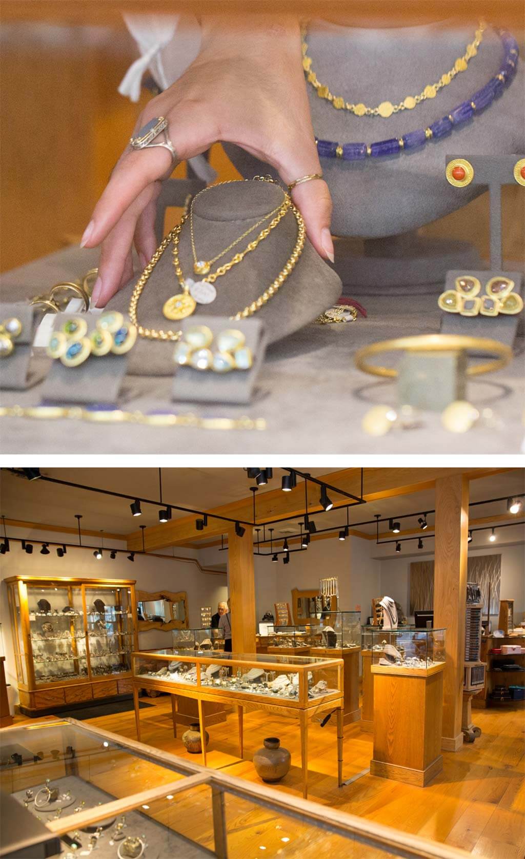 The Lubmans had grown to love the town, which even back in the ’70s hosted a top-flight craft fair but had little in the way of galleries. Thus was Hummingbird originally hatched in 1978, with master metalsmith Bruce Anderson taking over as jeweler while Lubman studied gemology and appraising. The name was inspired by a Henry Miller novelette, “Stand Still Like the Hummingbird,” combined with the fact that Webster’s defines the word “a tiny, jewel-like bird.” The store did indeed flit about a bit to various locations before finding its current home, and the Lubmans expanded their horizons, sourcing fresh treasures from around the globe. “We have beautiful things from Germany, Italy, Greece, Brazil, Turkey—it’s much more diverse but the quality is still the same, and we’ve kept the focus on designer-made pieces and custom work,” says Lubman.