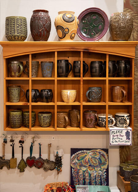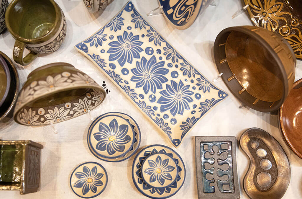 Newberry Artisan Market went fully live in October of 2022; 2 years later, there’s a waiting list for vendors, and the space was reconfigured last fall to add new ones. “I try to avoid duplication, so we might have, say, two woodworkers, but one is making very modern items and the other works in more of a farmhouse style,” Hicks says. “But I don’t want to be overly rigid with any of this. Mostly, they have to be original, and the quality has to be there. And every time you come here, I want you to discover new things.” Categories represented include pottery, jewelry, unique designer clothing, eco-friendly body products, vintage, art, collectibles, greeting cards; syrups and fruit butters, and too many more to list; each vendor’s unique slant is reflected on their page of the market’s website.