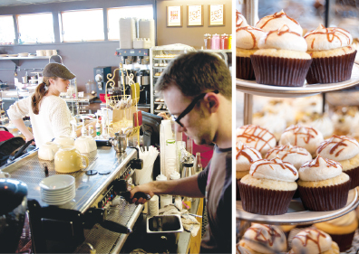 “I’m always trying new things,” says the self-described foodie. She even once made an edible rainforest cake complete with a candy waterfall and a bubbling brook of Pop Rocks. “I love visiting new shops and looking at everything from their products to their branding to the layout of their space. In our new location, we have a full espresso bar and offer a full line of hot and frozen coffee drinks and smoothies. We also offer some savory options in the form of tapas, paninis, and soups.”