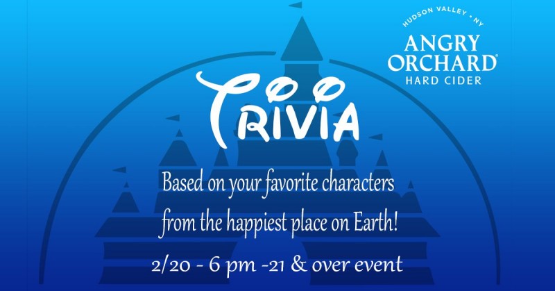 Join us for some magical trivia based on your favorite characters from the happiest place on Earth! Bippity boppity booze it up, come share some cider in a cup! Make sure to arrive at the orchard by 5:30pm to register your team and choose from a variety of exclusive hard ciders available on draft. Come out and play with ears, tails or a fin and get some magical prizes when you win! First and Second place teams will receive an orchard prize. We will also be featuring delicious food available for purchase all night. From 6-7pm, we will have Angry Hour where you will receive a dollar off your draft! There is no charge for this event. *21 and up*