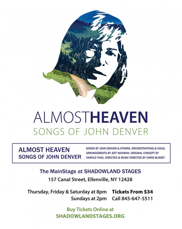 ALMOST HEAVEN is a musical tribute and intimate celebration of John Denver’s life and career, told through his numerous hit songs including “Rocky Mountain High,” “Sunshine on My Shoulders,” “Annie’s Song,” “Leaving on a Jet Plane,” “Calypso” and more. This musical revue creates a uniquely theatrical narrative celebrating a true American troubadour, and chronicling his impact as both storyteller and activist.