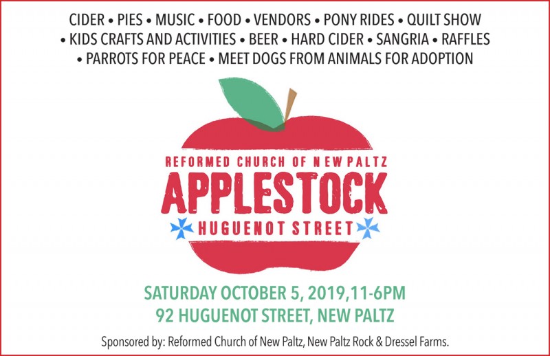 Enjoy music, food, apple pies, cider, kids games and crafts, a puppet show, farmers market, craft cider, beer and wine tasting, and meet exotic birds at the parrots for peace. This event is sponsored by the Reformed Church of New Paltz, New Paltz Rock, and Dressel Farms.