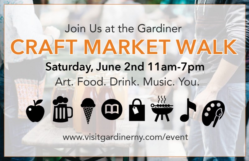 The Craft Market Walk is an event inspired by the artisans, farmers, and craftsmanship in and around Gardiner, NY 12525 in Ulster County. Peruse through a one mile Craft Market Walk stretching from the Gardiner Library, to the Farmer's Market Grounds, across the Gardiner Rail Trail and onto the Yard Owl Craft Brewery! Enjoy handmade jewelry, vintage furniture, all-natural skincare, herbal remedies, farmhouse pottery, up-cycled clothing, small batch spirits, craft beer, local wine and food, and all-day music, raffles and activities all along the way. This free event is family and pet-friendly. Come for community, shopping, and fun!