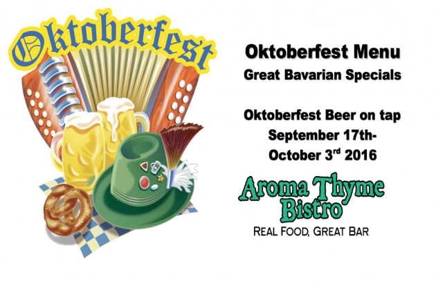 Oktoberfest at Aroma Thyme Bistro. It's an annual tradition here. Join us for authentic Bavarian food specials like: