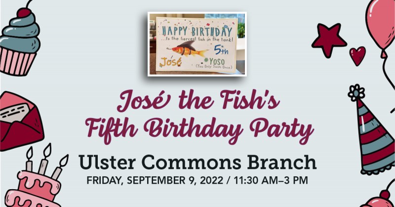 You’re invited to celebrate José the Fish’s Fifth Birthday at our Community Appreciation Day on September 9, 2022, from 11:30 am-3 pm, at our 1571 Ulster Ave., Lake Katrine branch in the Ulster Commons Plaza. Enjoy lunch on US! We'll have hot dogs, hamburgers, veggie burgers, and popcorn (while supplies last). Listen to live music from 92.9 WBPM Radio. We’ll have fun games and activities, such as corn hole and our popular Crack the Vault game*. Plus, we’ll be giving out prizes*.